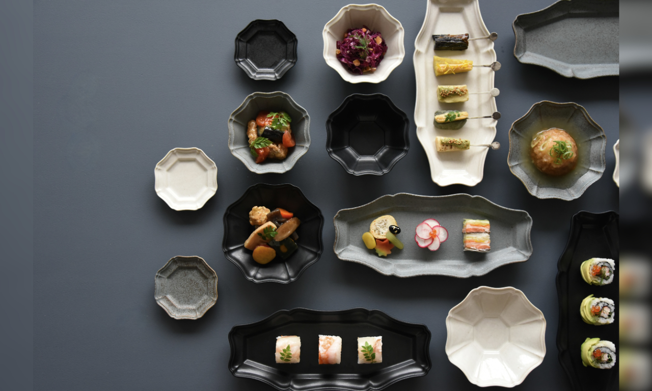 The number eight symbolizes good fortune and growth. To reflect the beauty of this form in food presentation, we incorporated the shapes and sizes of dishes used in kaiseki cuisine—such as appetizer plates, mukōzuke, small bowls, and soy dishes—resulting in a lineup that harmonizes with the Japanese dining style of ichiju-sansai.